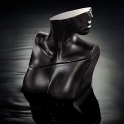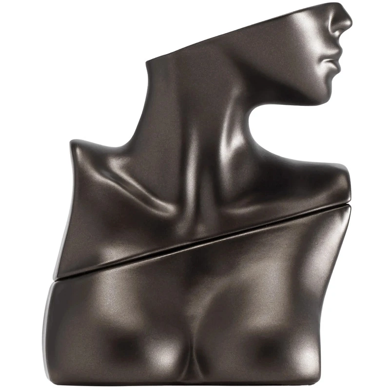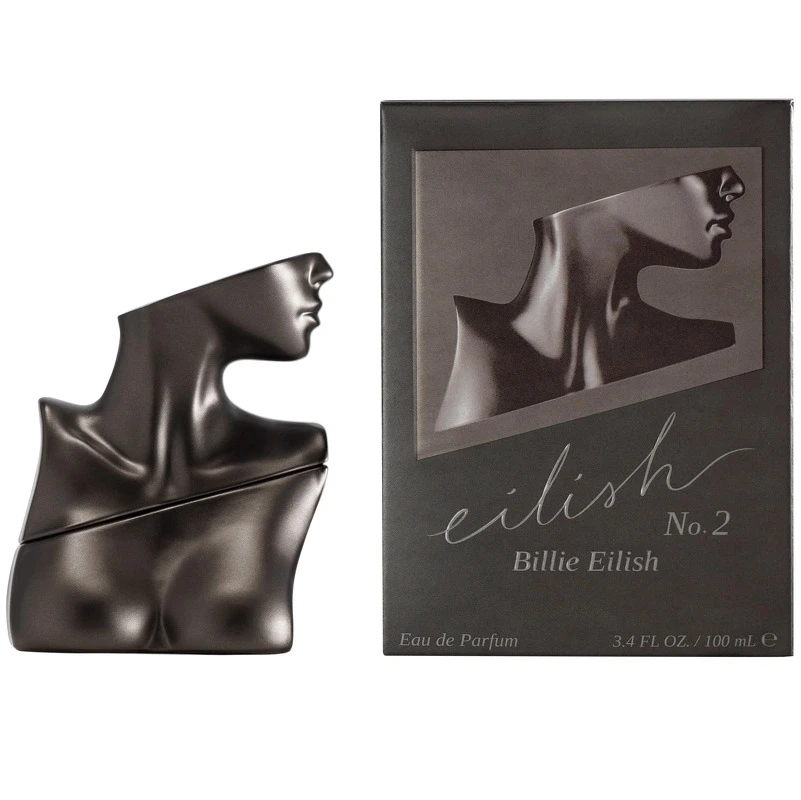 Flakonen er ligesom den originale duft inspireret af Billies yndlingsdele på kroppen: dekolletagen, halsen og kravebenene – men her i en metallisk, mørkegrå nuance.