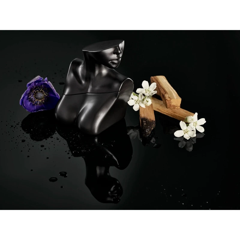 Flakonen er ligesom den originale duft inspireret af Billies yndlingsdele på kroppen: dekolletagen, halsen og kravebenene – men her i en metallisk, mørkegrå nuance.