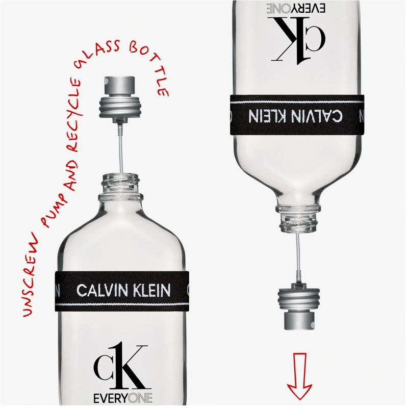 Flakonen er transparent, så du hele tiden kan se hvor meget der er tilbage, og rundt om den sidder et calvin Klein elastik bånd, der kan bruges som armbånd eller hvad du ellers har lyst til. Sidst men ikke mindst er der et låg på selve flakonen, og en medfølgende pumpe, så du også kan have den med dig over alt, uden at du har parfume på alle dine andre ting.