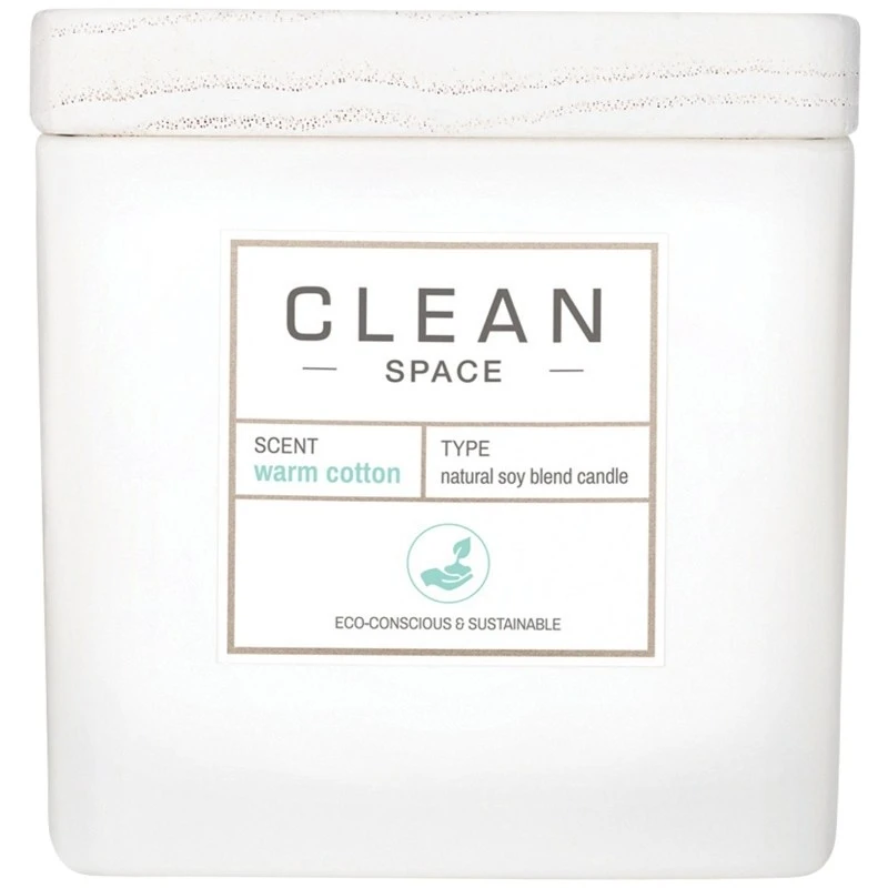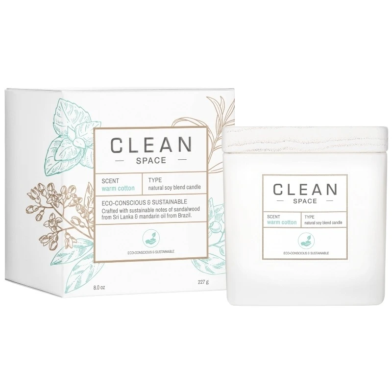Clean Perfume Space Warm Cotton Candle er et super lækkert vegansk duftlys, der virker beroligende på sanserne. Lyset er lavet i soyavoks og har to bomuldsvæger, så lyset brænder jævnt. Derudover er den uden de giftstoffer der oftest er i paraffinlys, så du får et bedre indeklima, uden at glemme hyggen. Et rigt og behageligt håndlavet lys, der med sin skønne noter af sandeltræ og mandarin, pryder hjemmet i helt op til 40 timer.