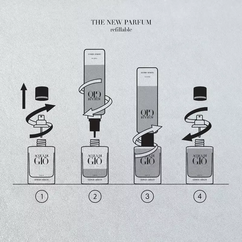 Men Acqua di Giò Parfum er mere end blot en bemærkelsesværdig duft. Det er et symbol på vores forpligtelse til bæredygtighed. Den elegante, genopfyldelige flakon er skabt med omhu og finesse, med en maskulin form og smukt graduerede sorte nuancer, der afspejler parfumens kraft. Dette er deres måde at sige “ja” til skønhed og “ja” til planeten.