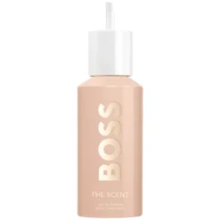 BOSS The Scent Eau de Parfum til kvinder genopfinder styrkende sensualitet i en krystallinsk, refill-flaske med BOSS-logoet på gennemskinneligt glas og en iset guldhætte med BOSS Double-B-monogrammet. Dens mangefacetterede form fanger rampelyset og afspejler den sensoriske styrkeprøve i denne ferskenfarvede duft, samtidig med den afspejler de mange sider af et power-par.