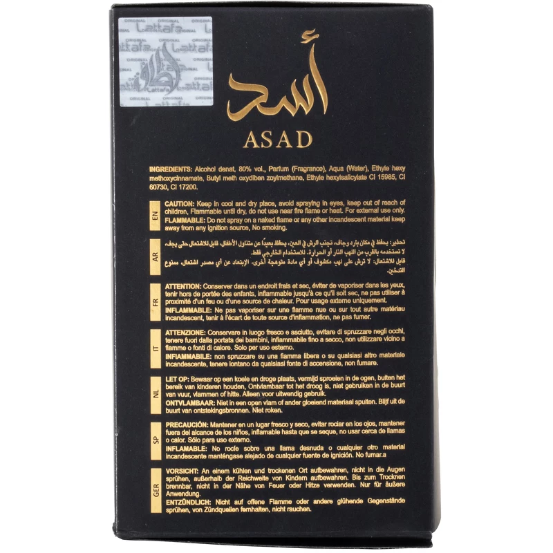 Lattafa Asad EDP er en skøn eau de parfume, som er ideel til manden, der er vil elske at fange alles opmærksomhed med denne uforglemmelige duft.
