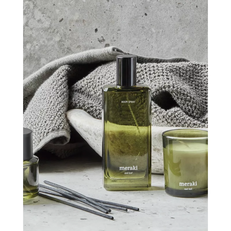 Meraki Roomspray – Oud Leaf er en fantastisk roomspray, som kan bruges til at skabe en fortryllende atmosfære i dit hjem med en eksotisk og varm aroma.