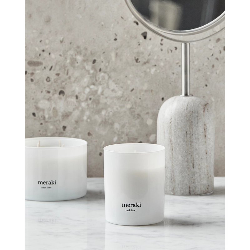 Meraki Scented Candle 200 gr. – Fresh Linen er et flot og enkelt duftlys, som skaber en rolig oase i dit hjem med en blid duft af nyvasket linned.