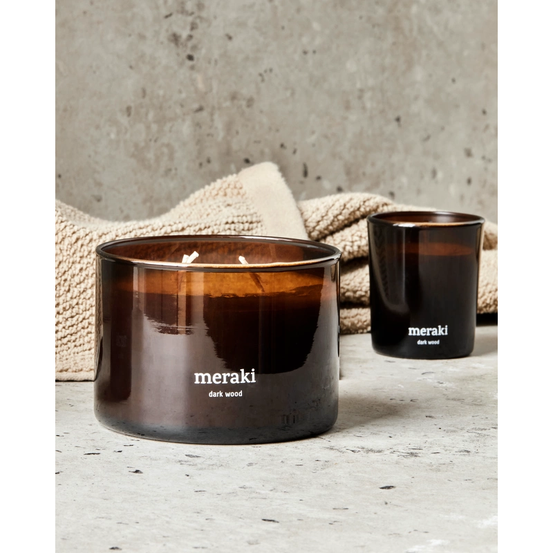 Meraki Scented Candle 340 gr. – Dark Wood er et flot og enkelt duftlys med en dyb, træagtig duft, der tilfører varme og elegance til dit hjem.
