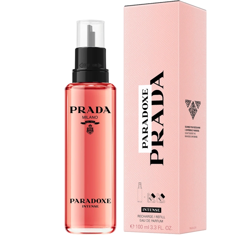 Prada har også taget et stort skridt mod en mere bæredygtig fremtid. Dette har de blandt andet gjort med deres genanvendelige flasker og FSC™ MIX-certificerede kasser. Prada Paradoxe Intense flakonen kan også genopfyldes, hvilket reducerer affaldet betydeligt. Én 50 ml flakon Prada Paradoxe Intense og en 100 ml refill bruger 40% mindre materiale end tre 50 ml flakoner Prada Paradoxe Intense. Dette reducerer miljøpåvirkningen med 29% glas, 67% metal, 46% plast og 39% papir.