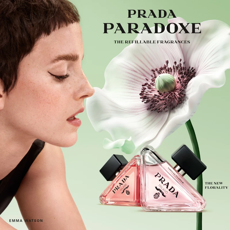 En enkelt 50 ml flaske Prada Paradoxe Virtual Flower og en 100 ml refill hjælper med at reducere brugen af materialer med i alt 39 % sammenlignet med tre 50 ml flasker Prada Paradoxe Virtual Flower. Det omfatter 29 % glas, 67 % metaller, 44 % plast og 41 % pap.