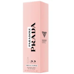 Prada Paradoxe Virtual Flower EDP Refill er en refill til di originale flakon. Hele Prada Paradoxe-serien kan genopfyldes, hvilket giver mulighed for mindre emballagemateriale. En enkelt 50 ml flaske Prada Paradoxe Virtual Flower og en 100 ml refill hjælper med at reducere brugen af 38 % færre materialer i alt i modsætning til tre 50 ml flasker Prada Paradoxe Virtual Flower. Dette omfatter: – 29% af glas – 67% af metallerne – 44% af plastik – 41 % af pap.