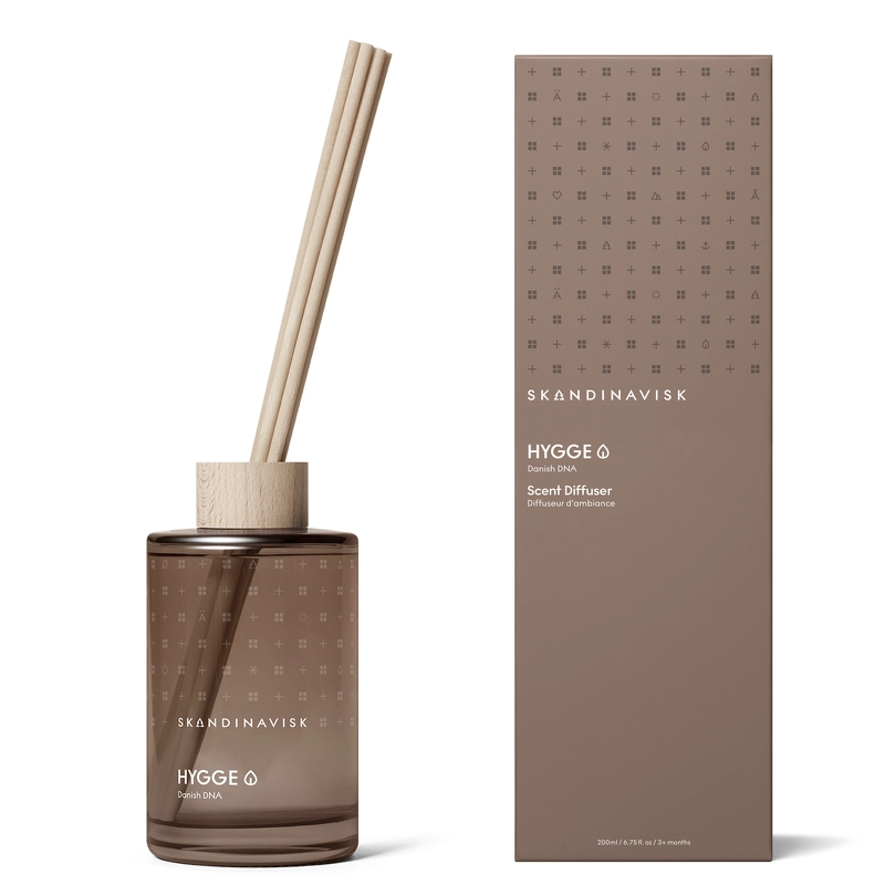 SKANDINAVISK HYGGE Scent Diffuser er en diffuser, som har en duft af sort te og mynte blade, tørrede æbler og et lille drys bagt kanel.