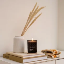 Lyset kommer i et smukt og enkelt glas med indgraveret låg af FSC-certificeret bøgetræ, som vil passe smukt ind i ethvert hjem. Når lyset er opbrugt, kan glasset genbruges til fyrfadslys eller opbevaring af mindre ting.