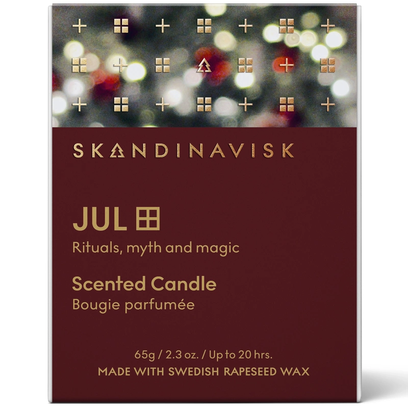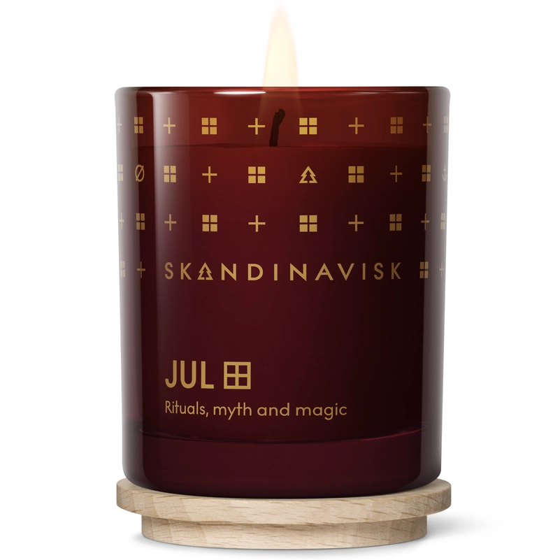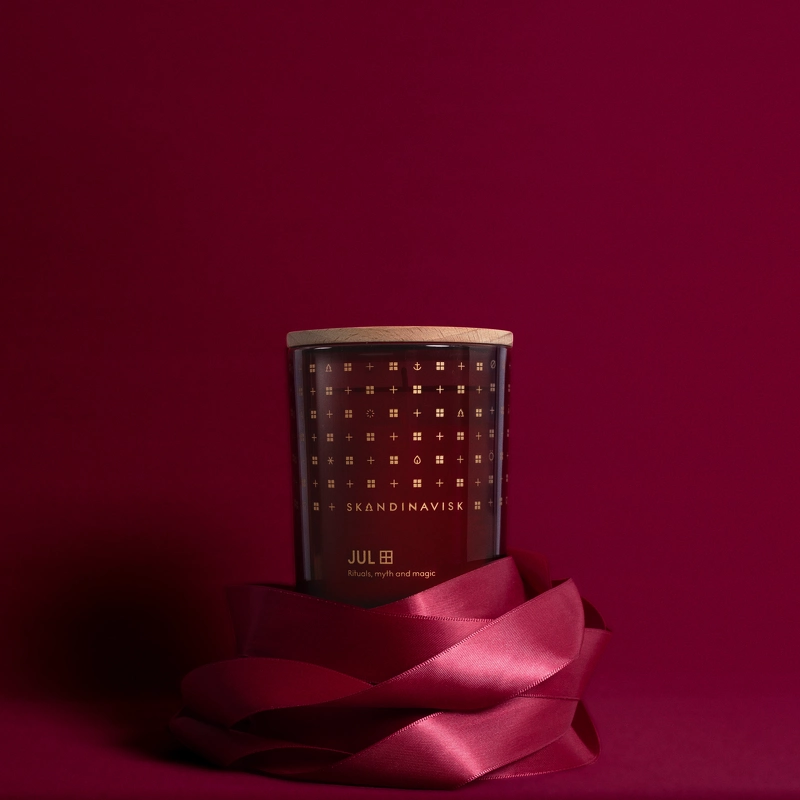 SKANDINAVISK JUL Scented Candle er et stilfuldt duftlys med vidunderlige duftnoter af bagte honningkager, nelliker, krydret appelsiner og gløgg – dufte, som er indbegrebet af jul!