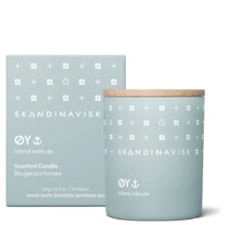 SKANDINAVISK ØY Scented Candle er et stilfuldt duftlys med duftnoter af Paradis æble, Rosa canina, vandmos og grønne blade.