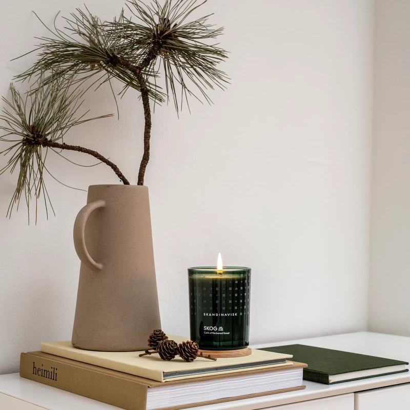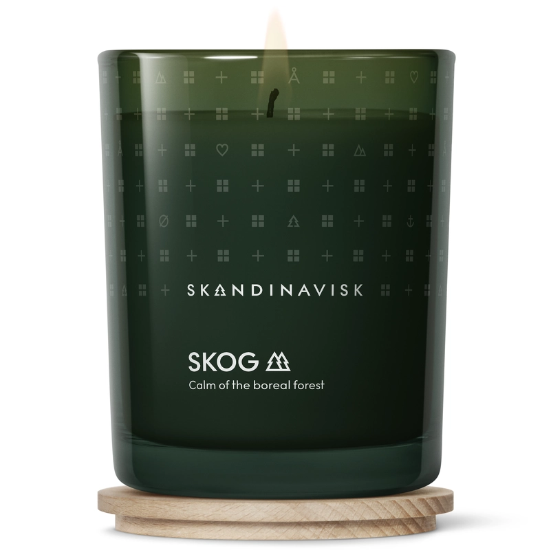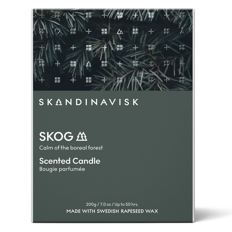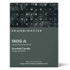SKANDINAVISK SKOG Scented Candle – Special Edition er et stilfuldt duftlys med duftnoter af fyrrenåle, grankogler, birkesaft og liljekonval, og hvor glas og emballage kommer i et special edition design.