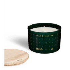 SKANDINAVISK SKOG Scented Candle er et stilfuldt duftlys med duftnoter af fyrrenåle, gran kogler, birkesaft, og Liljekonval. Duftlyset består af en voksblanding af svensk rapsolie der er bæredygtig dyrket, og ikke-GMO modificeret men med egenskaber, der brænder stabilt og langsomt med lavest mulig miljøpåvirkning. Lyset er vegansk og cruelty free derudover kommer det i et malet glas med indgraveret FSC-certificeret bøgetræslåg. Emballagen kommer fra drevne svenske skove med naturlige farver.