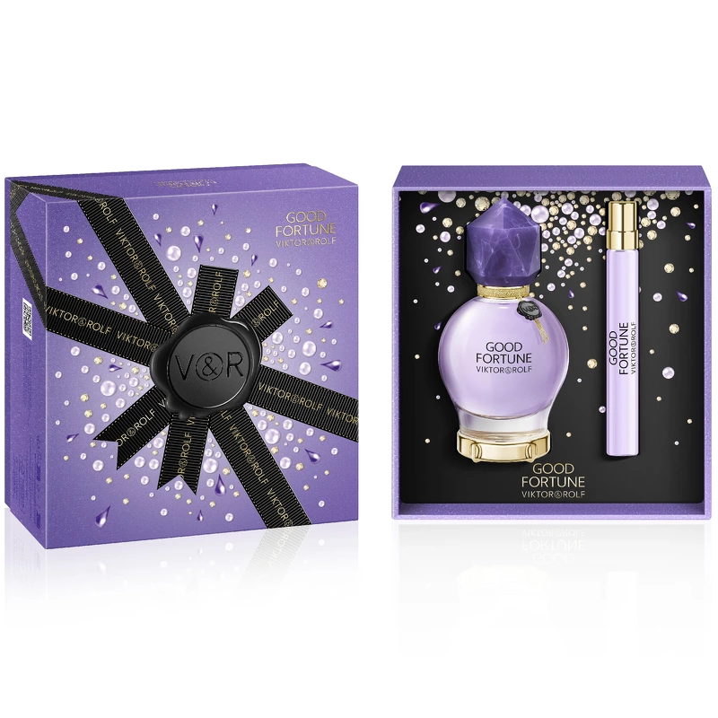 Viktor & Rolf Good Fortune EDP Gift Set (Limited Edition) inviterer dig til at opleve en festlig haute couture-fantasi fuld af glitter, glans og overflod. Dette sæt indeholder Good Fortune Eau de Parfum 50 ml og Good Fortune Eau de Parfum 10 ml.